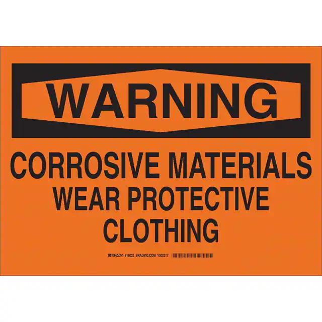 This is manufactured by Brady Corporation. The manufacturer part number is 16032. Label with a size of 14.00" l x 10.00" w (355.6mm x 254.0mm). The product is not applicable. It is assigned with possible HTSUS value of 3926.90.9985. It is shipped in bulk. It has a classic black legend, orange background colour. The product brady®, is a highly preferred choice for users. The product is made from highly stable and reliable polyester. In addition, it is reach unaffected. Its typical moisture sensitivity level is not applicable. A bespoke label is a warning. corrosive materials wear protective clothing label. The product is suitable for use with warning. It has a long 4 weeks standard lead time. The product is designated with the ear99 code number