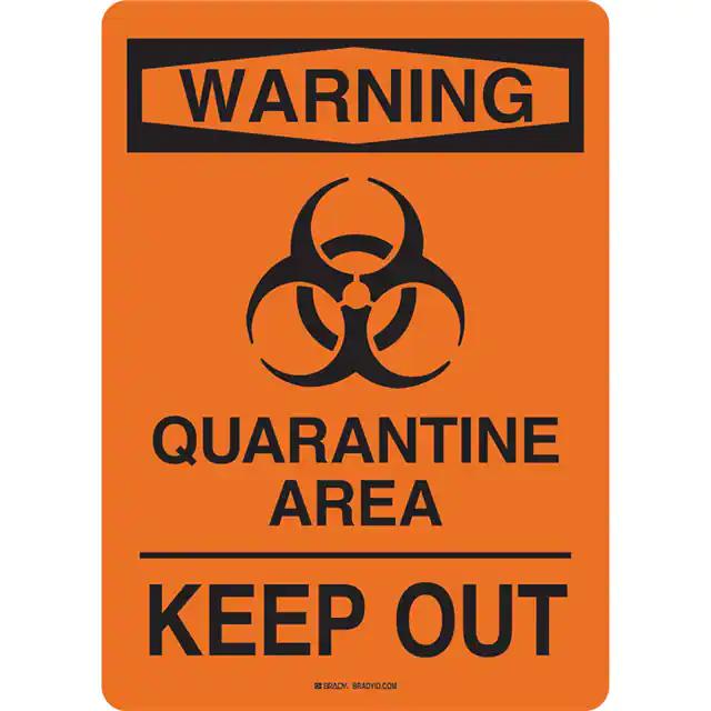 This is manufactured by Brady Corporation. The manufacturer part number is 170184. Label with a size of 10.00" l x 7.00" w (254.0mm x 177.8mm). The product is rohs compliant. It is assigned with possible HTSUS value of 3926.90.9985. It is shipped in bulk. It has a classic black legend, orange background colour. The product b-401, is a highly preferred choice for users. The product is made from highly stable and reliable plastic. Its typical moisture sensitivity level is not applicable. A bespoke label is a warning. quarantine area. keep out. label. The product is suitable for use with warning. The product is designated with the ear99 code number