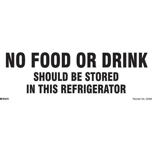 This is manufactured by Brady Corporation. The manufacturer part number is 22263MLS. Label with a size of 10.00" l x 3.50" w (254.0mm x 88.9mm). The product is rohs3 compliant. It is assigned with possible HTSUS value of 3926.90.9985. It is shipped in bulk. It has a classic black legend, white background colour. The product brady®, is a highly preferred choice for users. The product is made from highly stable and reliable vinyl. In addition, it is reach unaffected. Its typical moisture sensitivity level is not applicable. A bespoke label is a no food or drink should be stored in this refrigerator label. The product is suitable for use with warning. It has a long 4 weeks standard lead time. The product is designated with the ear99 code number