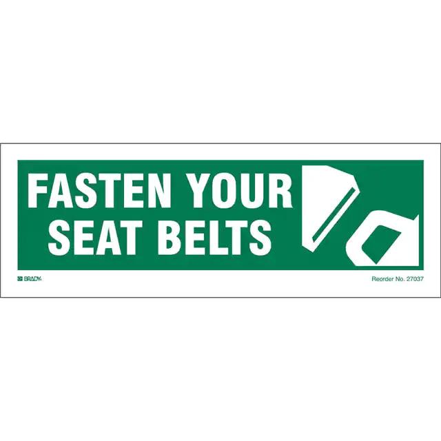 This is manufactured by Brady Corporation. The manufacturer part number is 27037KLS. Label with a size of 10.00" l x 3.50" w (254.0mm x 88.9mm). The product is rohs3 compliant. It is assigned with possible HTSUS value of 3926.90.9985. It is shipped in bulk. It has a classic green legend, white background colour. The product brady®, is a highly preferred choice for users. The product is made from highly stable and reliable polyester. In addition, it is reach unaffected. Its typical moisture sensitivity level is not applicable. A bespoke label is a fasten your seat belts label. The product is suitable for use with notice. It has a long 4 weeks standard lead time. The product is designated with the ear99 code number