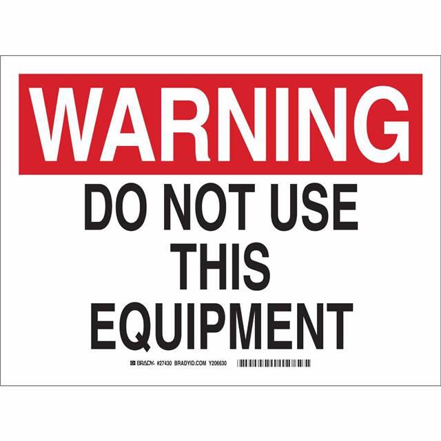 This is manufactured by Brady Corporation. The manufacturer part number is 27430. Label with a size of 14.00" l x 10.00" w (355.6mm x 254.0mm). The product is rohs3 compliant. It is assigned with possible HTSUS value of 3926.90.9985. It is shipped in bulk. It has a classic black and red legend, white background colour. The product brady®, is a highly preferred choice for users. The product is made from highly stable and reliable polyester. In addition, it is reach unaffected. Its typical moisture sensitivity level is not applicable. A bespoke label is a warning. do not use this equipment label. The product is suitable for use with warning. It has a long 4 weeks standard lead time. The product is designated with the ear99 code number