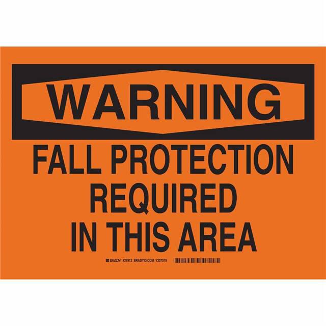 This is manufactured by Brady Corporation. The manufacturer part number is 27915. Label with a size of 14.00" l x 10.00" w (355.6mm x 254.0mm). The product is rohs3 compliant. It is assigned with possible HTSUS value of 8310.00.0000. It is shipped in bulk. It has a classic black legend, orange background colour. The product brady®, is a highly preferred choice for users. The product is made from highly stable and reliable aluminum. In addition, it is reach unaffected. Its typical moisture sensitivity level is not applicable. A bespoke label is a warning. fall protection required in this area label. The product is suitable for use with warning. It has a long 4 weeks standard lead time. The product is designated with the ear99 code number