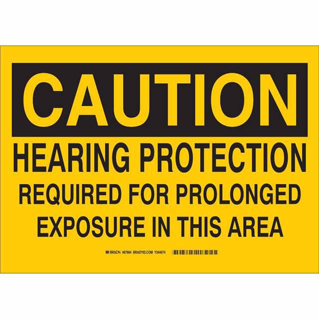 This is manufactured by Brady Corporation. The manufacturer part number is 33659. Label with a size of 14.00" l x 10.00" w (355.6mm x 254.0mm). The product is not applicable. It is assigned with possible HTSUS value of 8310.00.0000. It is shipped in bulk. It has a classic black legend, yellow background colour. The product brady®, is a highly preferred choice for users. The product is made from highly stable and reliable aluminum. In addition, it is reach affected. Its typical moisture sensitivity level is not applicable. A bespoke label is a caution. hearing protection required for prolonged exposure in this area label. The product is suitable for use with caution. It has a long 4 weeks standard lead time. The product is designated with the ear99 code number
