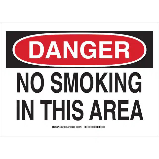 This is manufactured by Brady Corporation. The manufacturer part number is 35910. Label with a size of 14.00" l x 10.00" w (355.6mm x 254.0mm). The product is rohs3 compliant. It is assigned with possible HTSUS value of 3926.90.9985. It is shipped in bulk. It has a classic black and red legend, white background colour. The product brady®, is a highly preferred choice for users. The product is made from highly stable and reliable polyester. In addition, it is reach unaffected. Its typical moisture sensitivity level is not applicable. A bespoke label is a danger. no smoking in this area label. The product is suitable for use with danger. It has a long 4 weeks standard lead time. The product is designated with the ear99 code number