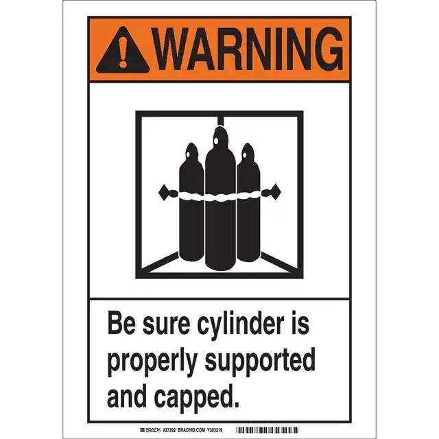 This is manufactured by Brady Corporation. The manufacturer part number is 37392. Label with a size of 14.00" l x 10.00" w (355.6mm x 254.0mm). The product is rohs3 compliant. It is assigned with possible HTSUS value of 8310.00.0000. It is shipped in bulk. It has a classic black and orange legend, white background colour. The product brady®, is a highly preferred choice for users. The product is made from highly stable and reliable aluminum. In addition, it is reach unaffected. Its typical moisture sensitivity level is not applicable. A bespoke label is a warning. be sure cylinder is properly supported and capped label. The product is suitable for use with warning. It has a long 4 weeks standard lead time. The product is designated with the ear99 code number