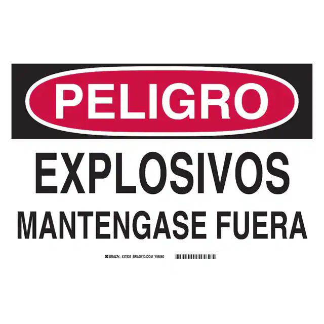 This is manufactured by Brady Corporation. The manufacturer part number is 37834. Label with a size of 14.00" l x 10.00" w (355.6mm x 254.0mm). The product is rohs3 compliant. It is assigned with possible HTSUS value of 8310.00.0000. It is shipped in bulk. It has a classic black and red legend, white background colour. The product brady®, is a highly preferred choice for users. The product is made from highly stable and reliable aluminum. In addition, it is reach unaffected. Its typical moisture sensitivity level is not applicable. A bespoke label is a peligro - explosivos mantengase fuera label. The product is suitable for use with danger. It has a long 4 weeks standard lead time. The product is designated with the ear99 code number