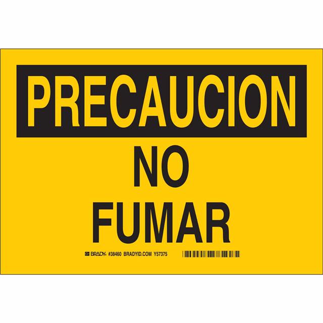 This is manufactured by Brady Corporation. The manufacturer part number is 38460. Label with a size of 14.00" l x 10.00" w (355.6mm x 254.0mm). The product is not applicable. It is assigned with possible HTSUS value of 8310.00.0000. It is shipped in bulk. It has a classic black legend, yellow background colour. The product brady®, is a highly preferred choice for users. The product is made from highly stable and reliable aluminum. In addition, it is reach affected. Its typical moisture sensitivity level is not applicable. A bespoke label is a precaucion. no fumar label. The product is suitable for use with caution. It has a long 4 weeks standard lead time. The product is designated with the ear99 code number