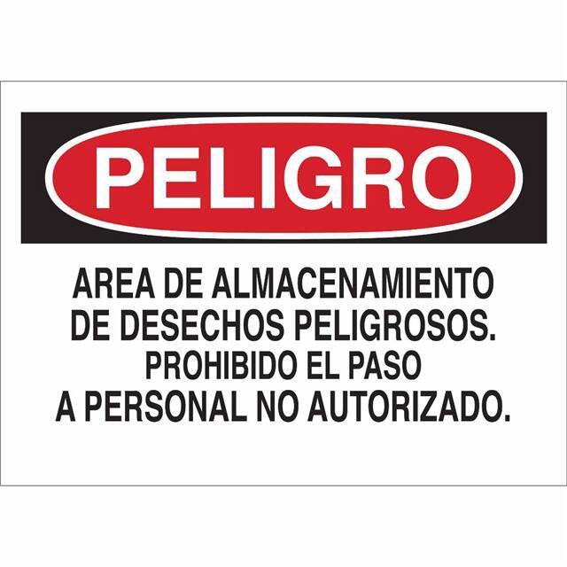 This is manufactured by Brady Corporation. The manufacturer part number is 39555. Label with a size of 14.00" l x 10.00" w (355.6mm x 254.0mm). The product is rohs3 compliant. It is assigned with possible HTSUS value of 3926.90.9985. It is shipped in bulk. It has a classic black and red legend, white background colour. The product brady®, is a highly preferred choice for users. The product is made from highly stable and reliable fiberglass. In addition, it is reach unaffected. Its typical moisture sensitivity level is not applicable. A bespoke label is a peligro. area de almacenamiento de desechos peligrosos. prohibido el paso a personal no autorizado label. The product is suitable for use with danger. It has a long 4 weeks standard lead time. The product is designated with the ear99 code number