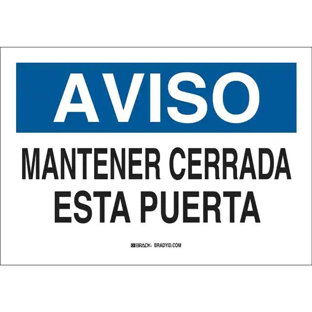 This is manufactured by Brady Corporation. The manufacturer part number is 39731. Label with a size of 14.00" l x 10.00" w (355.6mm x 254.0mm). The product is rohs3 compliant. It is assigned with possible HTSUS value of 3926.90.9985. It is shipped in bulk. It has a classic black and blue legend, white background colour. The product brady®, is a highly preferred choice for users. The product is made from highly stable and reliable fiberglass. In addition, it is reach unaffected. Its typical moisture sensitivity level is not applicable. A bespoke label is a aviso. mantener cerrada esta puerta label. The product is suitable for use with notice. It has a long 4 weeks standard lead time. The product is designated with the ear99 code number