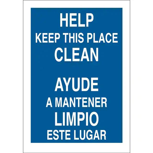 This is manufactured by Brady Corporation. The manufacturer part number is 39742. Label with a size of 20.00" l x 14.00" w (508.0mm x 355.6mm). The product is rohs3 compliant. It is assigned with possible HTSUS value of 3926.90.9985. It is shipped in bulk. It has a classic white legend, blue background colour. The product brady®, is a highly preferred choice for users. The product is made from highly stable and reliable fiberglass. In addition, it is reach unaffected. Its typical moisture sensitivity level is not applicable. A bespoke label is a help keep this place clea-yude a mantener esta area limpia label. The product is suitable for use with notice. It has a long 4 weeks standard lead time. The product is designated with the ear99 code number