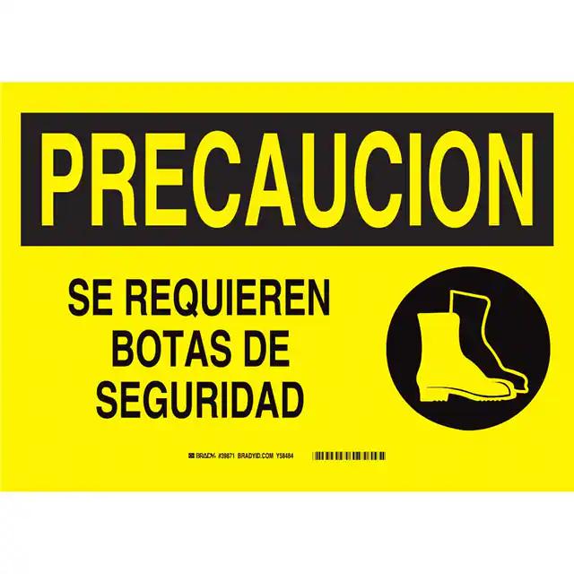 This is manufactured by Brady Corporation. The manufacturer part number is 39871. Label with a size of 14.00" l x 10.00" w (355.6mm x 254.0mm). The product is rohs3 compliant. It is assigned with possible HTSUS value of 3926.90.9985. It is shipped in bulk. It has a classic black legend, yellow background colour. The product brady®, is a highly preferred choice for users. The product is made from highly stable and reliable fiberglass. In addition, it is reach unaffected. Its typical moisture sensitivity level is not applicable. A bespoke label is a precaucion. se requieren botas de seguridad label. The product is suitable for use with caution. It has a long 4 weeks standard lead time. The product is designated with the ear99 code number