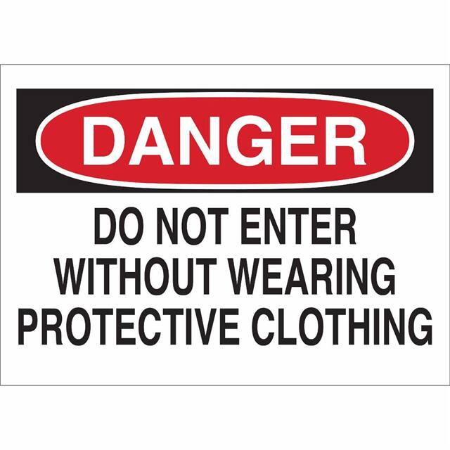 This is manufactured by Brady Corporation. The manufacturer part number is 40654. Label with a size of 14.00" l x 10.00" w (355.6mm x 254.0mm). The product is rohs3 compliant. It is assigned with possible HTSUS value of 8310.00.0000. It is shipped in bulk. It has a classic black and red legend, white background colour. The product brady®, is a highly preferred choice for users. The product is made from highly stable and reliable aluminum. In addition, it is reach unaffected. Its typical moisture sensitivity level is not applicable. A bespoke label is a danger. do not enter without wearing protective clothing label. The product is suitable for use with danger. It has a long 4 weeks standard lead time. The product is designated with the ear99 code number