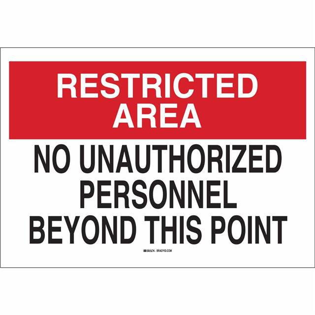 This is manufactured by Brady Corporation. The manufacturer part number is 40750. Label with a size of 14.00" l x 10.00" w (355.6mm x 254.0mm). The product is rohs3 compliant. It is assigned with possible HTSUS value of 8310.00.0000. It is shipped in bulk. It has a classic black and red legend, white background colour. The product brady®, is a highly preferred choice for users. The product is made from highly stable and reliable aluminum. In addition, it is reach unaffected. Its typical moisture sensitivity level is not applicable. A bespoke label is a restricted area. no unauthorized personnel beyond this point label. The product is suitable for use with warning. It has a long 4 weeks standard lead time. The product is designated with the ear99 code number