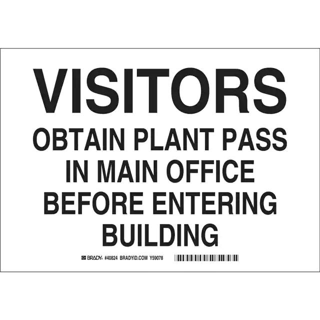 This is manufactured by Brady Corporation. The manufacturer part number is 40825. Label with a size of 14.00" l x 10.00" w (355.6mm x 254.0mm). The product is rohs3 compliant. It is assigned with possible HTSUS value of 8310.00.0000. It is shipped in bulk. It has a classic black legend, white background colour. The product brady®, is a highly preferred choice for users. The product is made from highly stable and reliable aluminum. In addition, it is reach unaffected. Its typical moisture sensitivity level is not applicable. A bespoke label is a visitors obtain plant pass in main office before entering building label. The product is suitable for use with notice. It has a long 4 weeks standard lead time. The product is designated with the ear99 code number