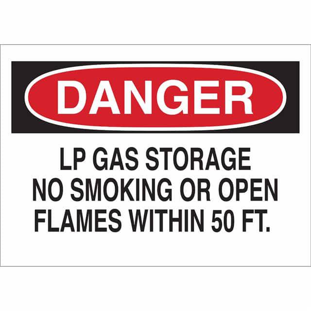 This is manufactured by Brady Corporation. The manufacturer part number is 40892. Label with a size of 14.00" l x 10.00" w (355.6mm x 254.0mm). The product is rohs3 compliant. It is assigned with possible HTSUS value of 8310.00.0000. It is shipped in bulk. It has a classic black and red legend, white background colour. The product brady®, is a highly preferred choice for users. The product is made from highly stable and reliable aluminum. In addition, it is reach unaffected. Its typical moisture sensitivity level is not applicable. A bespoke label is a danger. lp gas storage no smoking or open flames within 50 ft label. The product is suitable for use with danger. It has a long 4 weeks standard lead time. The product is designated with the ear99 code number