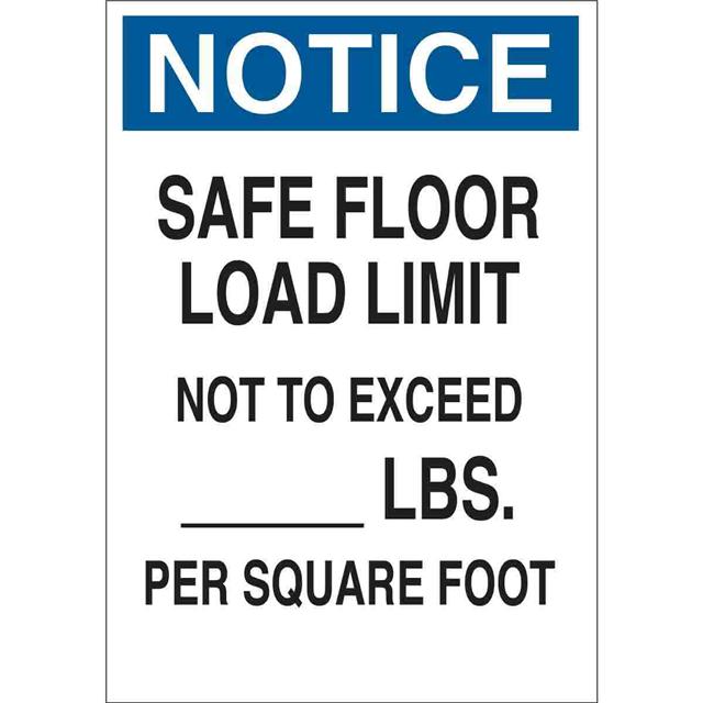 This is manufactured by Brady Corporation. The manufacturer part number is 41375. Label with a size of 14.00" l x 10.00" w (355.6mm x 254.0mm). The product is rohs3 compliant. It is assigned with possible HTSUS value of 8310.00.0000. It is shipped in bulk. It has a classic black and blue legend, white background colour. The product brady®, is a highly preferred choice for users. The product is made from highly stable and reliable aluminum. In addition, it is reach unaffected. Its typical moisture sensitivity level is not applicable. A bespoke label is a notice. safe floor load limit not to exceed. lbs. per square foot label. The product is suitable for use with notice. It has a long 4 weeks standard lead time. The product is designated with the ear99 code number
