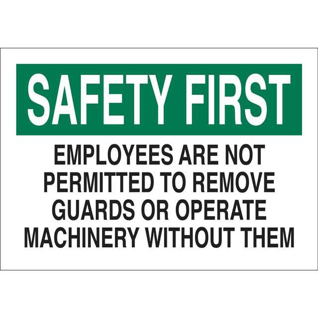 This is manufactured by Brady Corporation. The manufacturer part number is 42595. Label with a size of 14.00" l x 10.00" w (355.6mm x 254.0mm). The product is rohs3 compliant. It is assigned with possible HTSUS value of 8310.00.0000. It is shipped in bulk. It has a classic black and green legend, white background colour. The product brady®, is a highly preferred choice for users. The product is made from highly stable and reliable aluminum. In addition, it is reach unaffected. Its typical moisture sensitivity level is not applicable. A bespoke label is a safety first. employees are not permitted to remove guards or operate machinery without them label. The product is suitable for use with safety. It has a long 4 weeks standard lead time. The product is designated with the ear99 code number