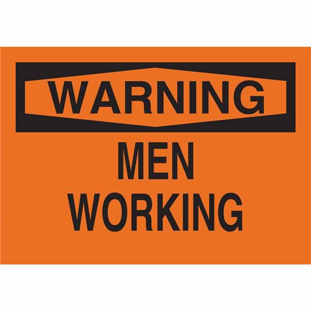 This is manufactured by Brady Corporation. The manufacturer part number is 42615. Label with a size of 14.00" l x 10.00" w (355.6mm x 254.0mm). The product is rohs3 compliant. It is assigned with possible HTSUS value of 8310.00.0000. It is shipped in bulk. It has a classic black legend, orange background colour. The product brady®, is a highly preferred choice for users. The product is made from highly stable and reliable aluminum. In addition, it is reach unaffected. Its typical moisture sensitivity level is not applicable. A bespoke label is a warning. men working label. The product is suitable for use with warning. It has a long 4 weeks standard lead time. The product is designated with the ear99 code number