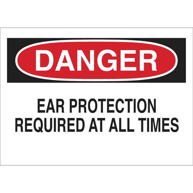 This is manufactured by Brady Corporation. The manufacturer part number is 43058. Label with a size of 14.00" l x 10.00" w (355.6mm x 254.0mm). The product is rohs3 compliant. It is assigned with possible HTSUS value of 8310.00.0000. It is shipped in bulk. It has a classic black and red legend, white background colour. The product brady®, is a highly preferred choice for users. The product is made from highly stable and reliable aluminum. In addition, it is reach unaffected. Its typical moisture sensitivity level is not applicable. A bespoke label is a danger. ear protection required at all times label. The product is suitable for use with danger. It has a long 4 weeks standard lead time. The product is designated with the ear99 code number