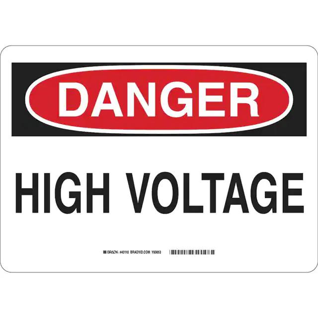 This is manufactured by Brady Corporation. The manufacturer part number is 43110. Label with a size of 14.00" l x 10.00" w (355.6mm x 254.0mm). The product is rohs3 compliant. It is assigned with possible HTSUS value of 8310.00.0000. It is shipped in bulk. It has a classic black and red legend, white background colour. The product brady®, is a highly preferred choice for users. The product is made from highly stable and reliable aluminum. In addition, it is reach unaffected. Its typical moisture sensitivity level is not applicable. A bespoke label is a danger. high voltage label. The product is suitable for use with danger. It has a long 4 weeks standard lead time. The product is designated with the ear99 code number
