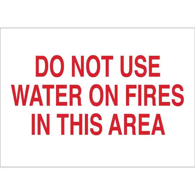This is manufactured by Brady Corporation. The manufacturer part number is 43274. Label with a size of 14.00" l x 10.00" w (355.6mm x 254.0mm). The product is rohs3 compliant. It is assigned with possible HTSUS value of 8310.00.0000. It is shipped in bulk. It has a classic red legend, white background colour. The product brady®, is a highly preferred choice for users. The product is made from highly stable and reliable aluminum. In addition, it is reach unaffected. Its typical moisture sensitivity level is not applicable. A bespoke label is a do not use water on fires in this area label. The product is suitable for use with fire. It has a long 4 weeks standard lead time. The product is designated with the ear99 code number
