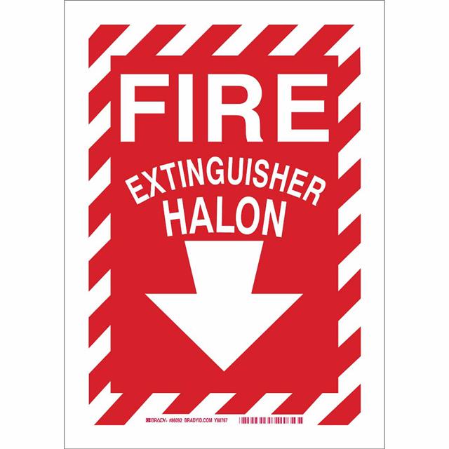 This is manufactured by Brady Corporation. The manufacturer part number is 43298. Label with a size of 14.00" l x 10.00" w (355.6mm x 254.0mm). The product is rohs3 compliant. It is assigned with possible HTSUS value of 8310.00.0000. It is shipped in bulk. It has a classic white legend, red background colour. The product brady®, is a highly preferred choice for users. The product is made from highly stable and reliable aluminum. In addition, it is reach unaffected. Its typical moisture sensitivity level is not applicable. A bespoke label is a fire extinguisher halon label. The product is suitable for use with fire. It has a long 4 weeks standard lead time. The product is designated with the ear99 code number