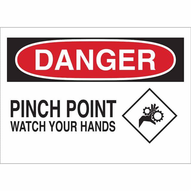 This is manufactured by Brady Corporation. The manufacturer part number is 43490. Label with a size of 14.00" l x 10.00" w (355.6mm x 254.0mm). The product is rohs3 compliant. It is assigned with possible HTSUS value of 8310.00.0000. It is shipped in bulk. It has a classic black and red legend, white background colour. The product brady®, is a highly preferred choice for users. The product is made from highly stable and reliable aluminum. In addition, it is reach unaffected. Its typical moisture sensitivity level is not applicable. A bespoke label is a danger. pinch point watch your hands label. The product is suitable for use with danger. It has a long 4 weeks standard lead time. The product is designated with the ear99 code number