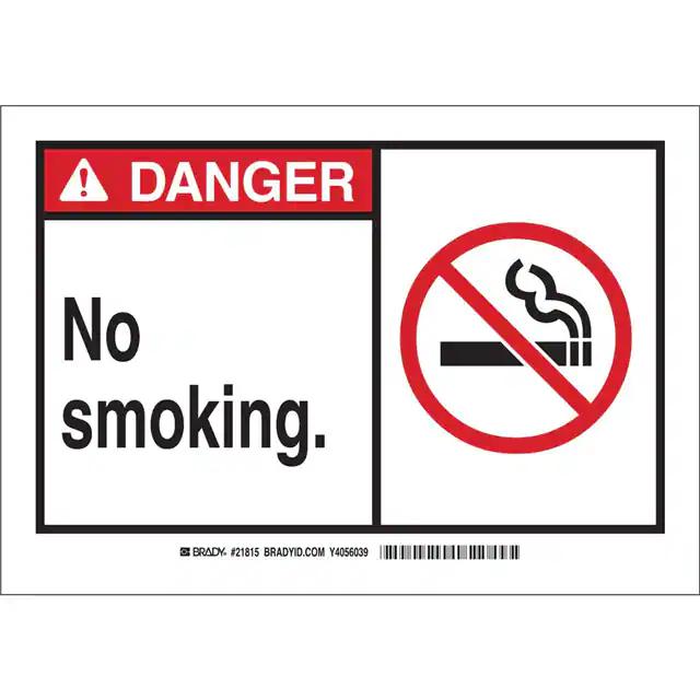 This is manufactured by Brady Corporation. The manufacturer part number is 62827. Label with a size of 14.00" l x 10.00" w (355.6mm x 254.0mm). The product is rohs3 compliant. It is assigned with possible HTSUS value of 3926.90.9985. It is shipped in bulk. It has a classic black and red legend, white background colour. The product brady®, is a highly preferred choice for users. The product is made from highly stable and reliable fiberglass. In addition, it is reach unaffected. Its typical moisture sensitivity level is not applicable. A bespoke label is a danger. no smoking. label. The product is suitable for use with danger. It has a long 4 weeks standard lead time. The product is designated with the ear99 code number
