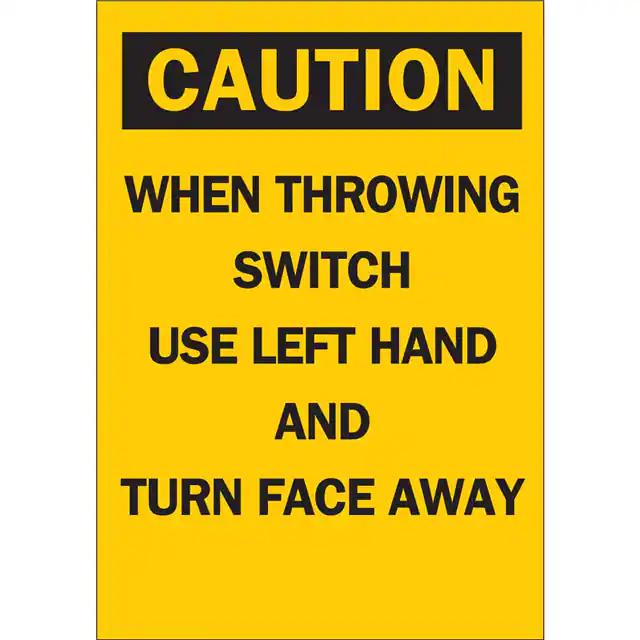This is manufactured by Brady Corporation. The manufacturer part number is 65576. Label with a size of 14.00" l x 10.00" w (355.6mm x 254.0mm). The product is rohs3 compliant. It is assigned with possible HTSUS value of 3926.90.9985. It is shipped in bulk. It has a classic black legend, yellow background colour. The product brady®, is a highly preferred choice for users. The product is made from highly stable and reliable fiberglass. In addition, it is reach unaffected. Its typical moisture sensitivity level is not applicable. A bespoke label is a caution. when throwing switch use left hand and turn face away label. The product is suitable for use with caution. It has a long 4 weeks standard lead time. The product is designated with the ear99 code number