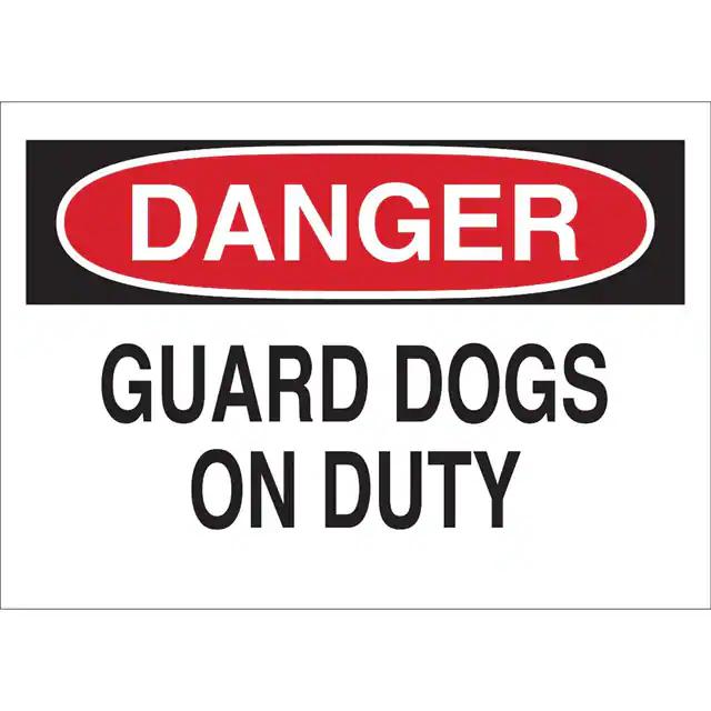 This is manufactured by Brady Corporation. The manufacturer part number is 69273. Label with a size of 14.00" l x 10.00" w (355.6mm x 254.0mm). The product is rohs3 compliant. It is assigned with possible HTSUS value of 3926.90.9985. It is shipped in bulk. It has a classic black and red legend, white background colour. The product brady®, is a highly preferred choice for users. The product is made from highly stable and reliable fiberglass. In addition, it is reach unaffected. Its typical moisture sensitivity level is not applicable. A bespoke label is a danger. guard dogs on duty label. The product is suitable for use with danger. It has a long 4 weeks standard lead time. The product is designated with the ear99 code number