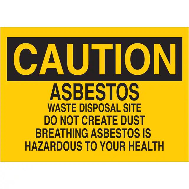 This is manufactured by Brady Corporation. The manufacturer part number is 69291. Label with a size of 20.00" l x 14.00" w (508.0mm x 355.6mm). The product is rohs3 compliant. It is assigned with possible HTSUS value of 3926.90.9985. It is shipped in bulk. It has a classic black legend, yellow background colour. The product brady®, is a highly preferred choice for users. The product is made from highly stable and reliable fiberglass. In addition, it is reach unaffected. Its typical moisture sensitivity level is not applicable. A bespoke label is a caution. asbestos waste disposal site do not create dust breathing asbestos is hazardous to your health label. The product is suitable for use with caution. It has a long 4 weeks standard lead time. The product is designated with the ear99 code number