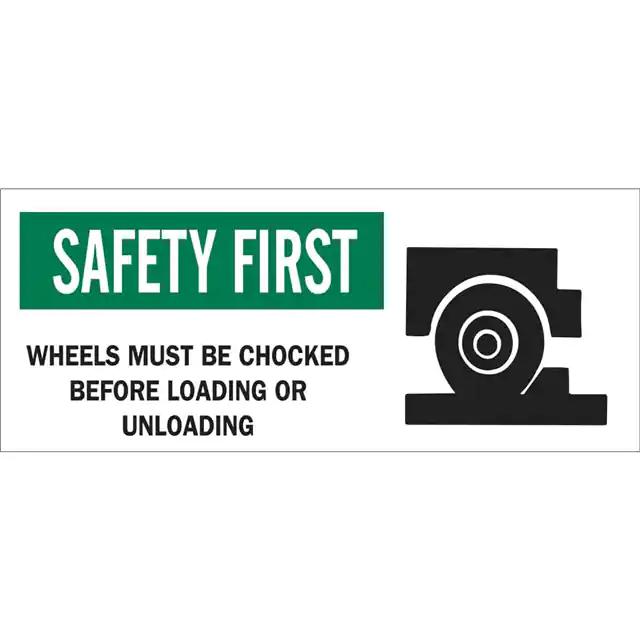 This is manufactured by Brady Corporation. The manufacturer part number is 69562. Label with a size of 17.00" l x 7.00" w (431.8mm x 177.8mm). The product is rohs3 compliant. It is assigned with possible HTSUS value of 3926.90.9985. It is shipped in bulk. It has a classic black and green legend, white background colour. The product brady®, is a highly preferred choice for users. The product is made from highly stable and reliable fiberglass. In addition, it is reach unaffected. Its typical moisture sensitivity level is not applicable. A bespoke label is a safety first. wheels must be chocked before loading or unloading label. The product is suitable for use with safety. It has a long 4 weeks standard lead time. The product is designated with the ear99 code number