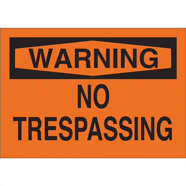 This is manufactured by Brady Corporation. The manufacturer part number is 69603. Label with a size of 14.00" l x 10.00" w (355.6mm x 254.0mm). The product is rohs3 compliant. It is assigned with possible HTSUS value of 3926.90.9985. It is shipped in bulk. It has a classic black legend, orange background colour. The product brady®, is a highly preferred choice for users. The product is made from highly stable and reliable fiberglass. In addition, it is reach unaffected. Its typical moisture sensitivity level is not applicable. A bespoke label is a warning. no trespassing label. The product is suitable for use with warning. It has a long 4 weeks standard lead time. The product is designated with the ear99 code number