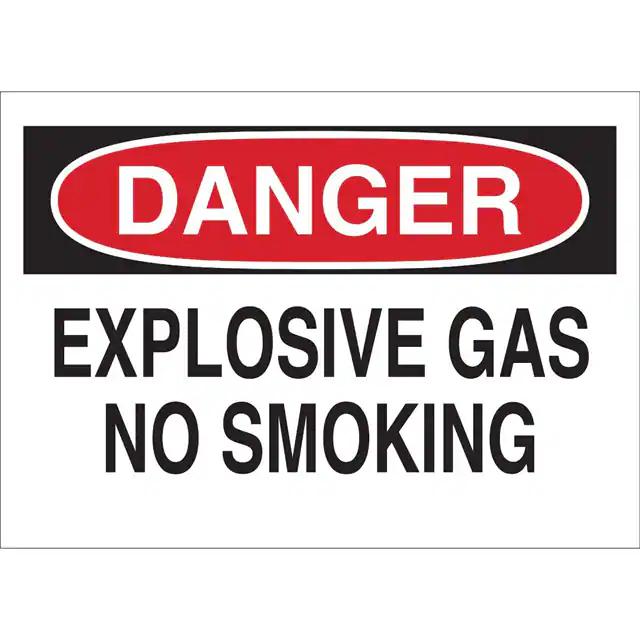 This is manufactured by Brady Corporation. The manufacturer part number is 70327. Label with a size of 14.00" l x 10.00" w (355.6mm x 254.0mm). The product is rohs3 compliant. It is assigned with possible HTSUS value of 3926.90.9985. It is shipped in bulk. It has a classic black and red legend, white background colour. The product brady®, is a highly preferred choice for users. The product is made from highly stable and reliable fiberglass. In addition, it is reach unaffected. Its typical moisture sensitivity level is not applicable. A bespoke label is a danger. explosive gas no smoking label. The product is suitable for use with danger. It has a long 4 weeks standard lead time. The product is designated with the ear99 code number