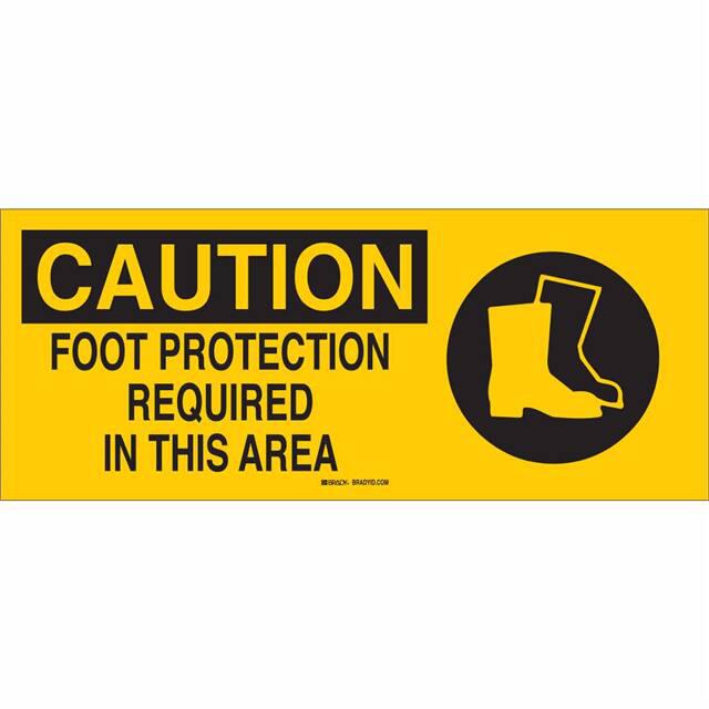 This is manufactured by Brady Corporation. The manufacturer part number is 70352. Label with a size of 17.00" l x 7.00" w (431.8mm x 177.8mm). The product is rohs3 compliant. It is assigned with possible HTSUS value of 3926.90.9985. It is shipped in bulk. It has a classic black legend, yellow background colour. The product brady®, is a highly preferred choice for users. The product is made from highly stable and reliable fiberglass. In addition, it is reach unaffected. Its typical moisture sensitivity level is not applicable. A bespoke label is a caution. foot protection required in this area label. The product is suitable for use with caution. It has a long 4 weeks standard lead time. The product is designated with the ear99 code number