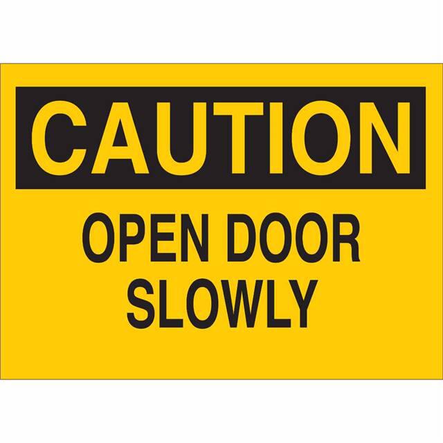 This is manufactured by Brady Corporation. The manufacturer part number is 70466. Label with a size of 14.00" l x 10.00" w (355.6mm x 254.0mm). The product is rohs3 compliant. It is assigned with possible HTSUS value of 3926.90.9985. It is shipped in bulk. It has a classic black legend, yellow background colour. The product brady®, is a highly preferred choice for users. The product is made from highly stable and reliable fiberglass. In addition, it is reach unaffected. Its typical moisture sensitivity level is not applicable. A bespoke label is a caution. open door slowly label. The product is suitable for use with caution. It has a long 4 weeks standard lead time. The product is designated with the ear99 code number