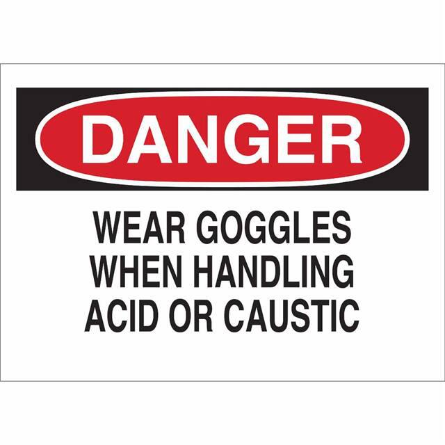 This is manufactured by Brady Corporation. The manufacturer part number is 70585. Label with a size of 14.00" l x 10.00" w (355.6mm x 254.0mm). The product is rohs3 compliant. It is assigned with possible HTSUS value of 3926.90.9985. It is shipped in bulk. It has a classic black and red legend, white background colour. The product brady®, is a highly preferred choice for users. The product is made from highly stable and reliable fiberglass. In addition, it is reach unaffected. Its typical moisture sensitivity level is not applicable. A bespoke label is a danger. wear goggles and rubber gloves when handling chemicals label. The product is suitable for use with danger. It has a long 4 weeks standard lead time. The product is designated with the ear99 code number