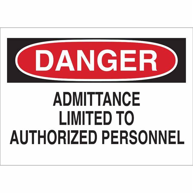 This is manufactured by Brady Corporation. The manufacturer part number is 70820. Label with a size of 20.00" l x 14.00" w (508.0mm x 355.6mm). The product is rohs3 compliant. It is assigned with possible HTSUS value of 3926.90.9985. It is shipped in bulk. It has a classic black and red legend, white background colour. The product brady®, is a highly preferred choice for users. The product is made from highly stable and reliable fiberglass. In addition, it is reach unaffected. Its typical moisture sensitivity level is not applicable. A bespoke label is a danger. admittance limited to authorized personnel label. The product is suitable for use with danger. It has a long 4 weeks standard lead time. The product is designated with the ear99 code number