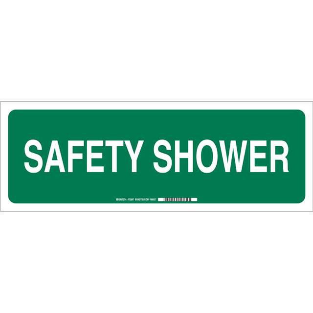 This is manufactured by Brady Corporation. The manufacturer part number is 72897. Label with a size of 20.00" l x 7.00" w (508.0mm x 177.8mm). The product is rohs3 compliant. It is assigned with possible HTSUS value of 3926.90.9985. It is shipped in bulk. It has a classic white legend, green background colour. The product brady®, is a highly preferred choice for users. The product is made from highly stable and reliable fiberglass. In addition, it is reach unaffected. Its typical moisture sensitivity level is not applicable. A bespoke label is a safety shower label. The product is suitable for use with safety. It has a long 4 weeks standard lead time. The product is designated with the ear99 code number