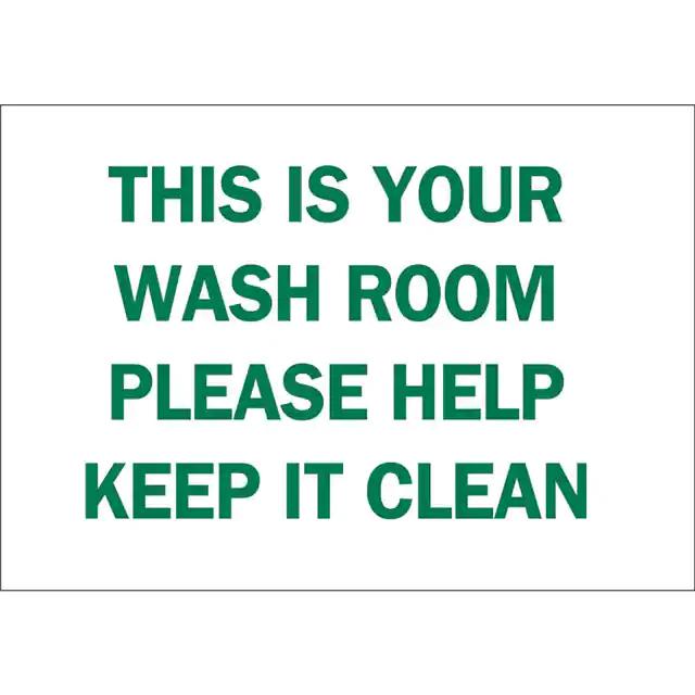 This is manufactured by Brady Corporation. The manufacturer part number is 72949. Label with a size of 14.00" l x 10.00" w (355.6mm x 254.0mm). The product is rohs3 compliant. It is assigned with possible HTSUS value of 3926.90.9985. It is shipped in bulk. It has a classic green legend, white background colour. The product brady®, is a highly preferred choice for users. The product is made from highly stable and reliable fiberglass. In addition, it is reach unaffected. Its typical moisture sensitivity level is not applicable. A bespoke label is a this is your washroom please help keep it clean label. The product is suitable for use with notice. It has a long 4 weeks standard lead time. The product is designated with the ear99 code number