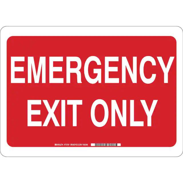 This is manufactured by Brady Corporation. The manufacturer part number is 73797. Label with a size of 14.00" l x 10.00" w (355.6mm x 254.0mm). The product is rohs3 compliant. It is assigned with possible HTSUS value of 3926.90.9985. It is shipped in bulk. It has a classic white legend, red background colour. The product brady®, is a highly preferred choice for users. The product is made from highly stable and reliable fiberglass. In addition, it is reach unaffected. Its typical moisture sensitivity level is not applicable. A bespoke label is a emergency exit only label. The product is suitable for use with emergency. It has a long 4 weeks standard lead time. The product is designated with the ear99 code number
