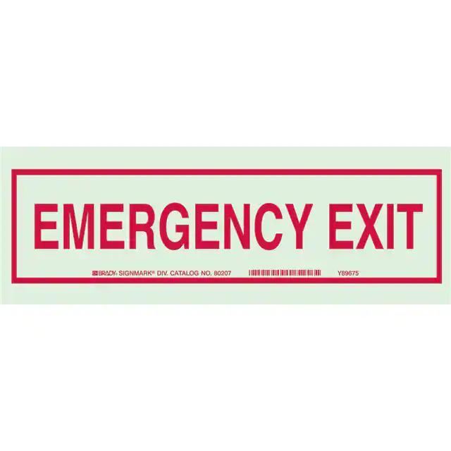 This is manufactured by Brady Corporation. The manufacturer part number is 80274. Label with a size of 14.00" l x 5.00" w (355.6mm x 127.0mm). The product is rohs3 compliant. It is assigned with possible HTSUS value of 3926.90.9985. It is shipped in bulk. It has a classic red legend, glow background colour. The product brady®, is a highly preferred choice for users. The product is made from highly stable and reliable polyester. In addition, it is reach unaffected. Its typical moisture sensitivity level is not applicable. A bespoke label is a emergency exit label. The product is suitable for use with emergency. It has a long 4 weeks standard lead time. The product is designated with the ear99 code number