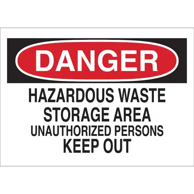 This is manufactured by Brady Corporation. The manufacturer part number is 84081. Label with a size of 14.00" l x 10.00" w (355.6mm x 254.0mm). The product is rohs3 compliant. It is assigned with possible HTSUS value of 3926.90.9985. It is shipped in bulk. It has a classic black and red legend, white background colour. The product brady®, is a highly preferred choice for users. The product is made from highly stable and reliable polyester. In addition, it is reach unaffected. Its typical moisture sensitivity level is not applicable. A bespoke label is a danger. hazardous waste storage area unauthorized persons keep out label. The product is suitable for use with danger. It has a long 4 weeks standard lead time. The product is designated with the ear99 code number