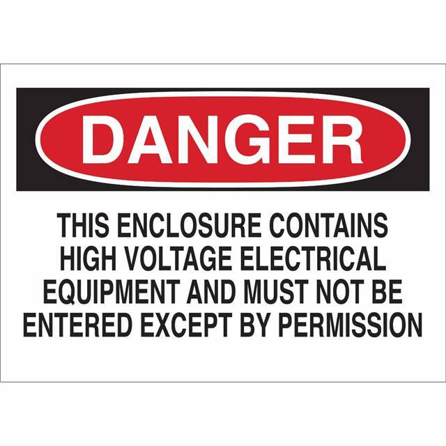 This is manufactured by Brady Corporation. The manufacturer part number is 84114. Label with a size of 14.00" l x 10.00" w (355.6mm x 254.0mm). The product is rohs3 compliant. It is assigned with possible HTSUS value of 3926.90.9985. It is shipped in bulk. It has a classic black and red legend, white background colour. The product brady®, is a highly preferred choice for users. The product is made from highly stable and reliable polyester. In addition, it is reach unaffected. Its typical moisture sensitivity level is not applicable. A bespoke label is a danger. this enclosure contains high voltage electrical equipment and must not be entered except by permission label. The product is suitable for use with danger. It has a long 4 weeks standard lead time. The product is designated with the ear99 code number