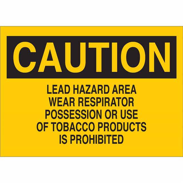 This is manufactured by Brady Corporation. The manufacturer part number is 85414. Label with a size of 14.00" l x 10.00" w (355.6mm x 254.0mm). The product is not applicable. It is assigned with possible HTSUS value of 3926.90.9985. It is shipped in bulk. It has a classic black legend, yellow background colour. The product brady®, is a highly preferred choice for users. The product is made from highly stable and reliable polyester. In addition, it is reach unaffected. Its typical moisture sensitivity level is not applicable. A bespoke label is a caution. lead hazard area wear respirator possession or use of tobacco products is prohibited label. The product is suitable for use with caution. It has a long 4 weeks standard lead time. The product is designated with the ear99 code number