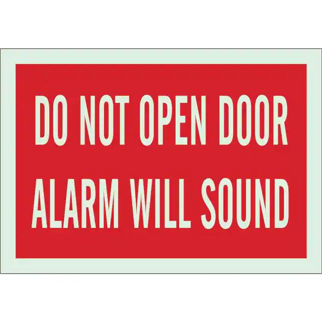 This is manufactured by Brady Corporation. The manufacturer part number is 90629. Label with a size of 14.00" l x 10.00" w (355.6mm x 254.0mm). The product is rohs3 compliant. It is assigned with possible HTSUS value of 3926.90.9985. It is shipped in bulk. It has a classic red legend, glow background colour. The product brady®, is a highly preferred choice for users. The product is made from highly stable and reliable polyester. In addition, it is reach unaffected. Its typical moisture sensitivity level is not applicable. A bespoke label is a do not open door alarm will sound label. The product is suitable for use with warning. It has a long 4 weeks standard lead time. The product is designated with the ear99 code number