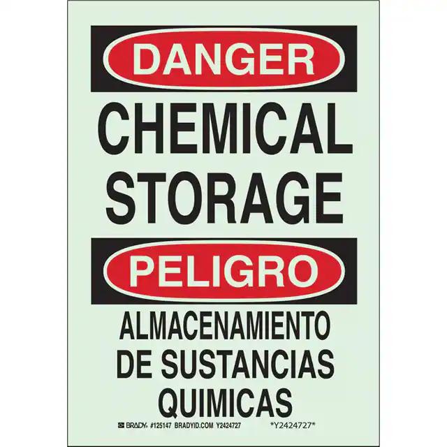 This is manufactured by Brady Corporation. The manufacturer part number is 90655. Label with a size of 10.00" l x 7.00" w (254.0mm x 177.8mm). The product is rohs3 compliant. It is assigned with possible HTSUS value of 3926.90.9985. It is shipped in bulk. It has a classic black and red legend, glow background colour. The product brady®, is a highly preferred choice for users. The product is made from highly stable and reliable polyester. In addition, it is reach unaffected. Its typical moisture sensitivity level is not applicable. A bespoke label is a danger/peligro. chemical storage/almacenamiento de sustancias quimicas label. The product is suitable for use with danger. It has a long 4 weeks standard lead time. The product is designated with the ear99 code number
