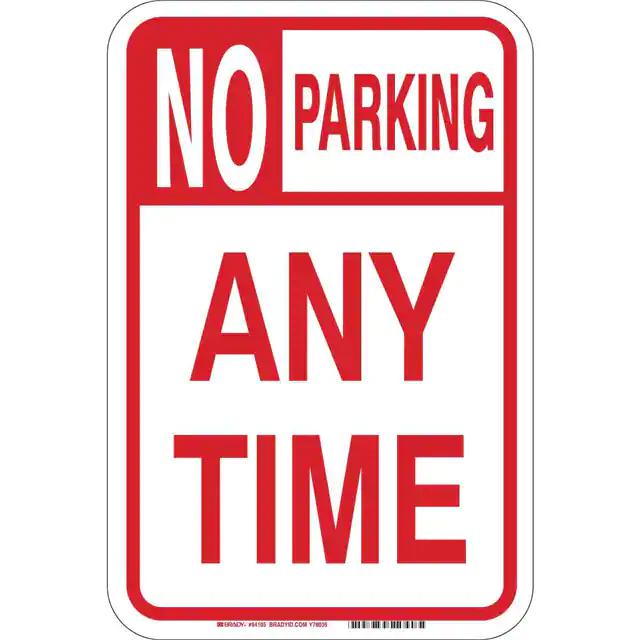 This is manufactured by Brady Corporation. The manufacturer part number is 94120. Label with a size of 18.00" l x 12.00" w (457.2mm x 304.8mm). The product is rohs3 compliant. It is assigned with possible HTSUS value of 8310.00.0000. It is shipped in bulk. It has a classic red legend, white background colour. The product brady®, is a highly preferred choice for users. The product is made from highly stable and reliable aluminum. In addition, it is reach unaffected. Its typical moisture sensitivity level is not applicable. A bespoke label is a no parking any time label. The product is suitable for use with warning. It has a long 4 weeks standard lead time. The product is designated with the ear99 code number