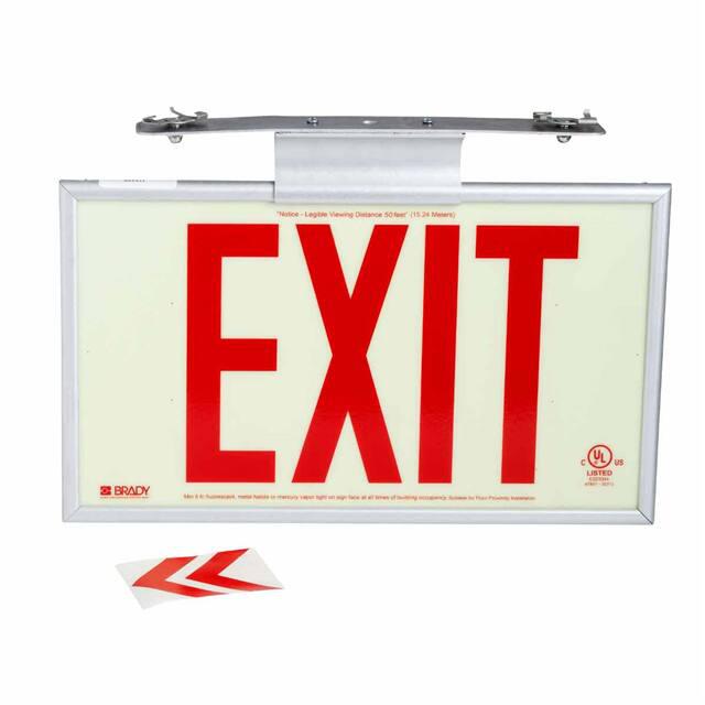 This is manufactured by Brady Corporation. The manufacturer part number is 115197. Label with a size of 15.75" l x 10.85" w (400.1mm x 275.6mm). It is assigned with possible HTSUS value of 3926.90.9985. It is shipped in bulk. It has a classic red legend, glow background colour. The product brady®, is a highly preferred choice for users. The product is made from highly stable and reliable plastic. Its typical moisture sensitivity level is not applicable. A bespoke label is a exit label. The product is designated with the ear99 code number