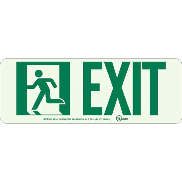 This is manufactured by Brady Corporation. The manufacturer part number is 81925. Label with a size of 14.00" l x 5.00" w (355.6mm x 127.0mm). The product is rohs3 compliant. It is assigned with possible HTSUS value of 8310.00.0000. It is shipped in bulk. It has a classic green legend, glow background colour. The product brady®, is a highly preferred choice for users. The product is made from highly stable and reliable aluminum. In addition, it is reach unaffected. Its typical moisture sensitivity level is not applicable. A bespoke label is a exit label. The product is suitable for use with notice. It has a long 4 weeks standard lead time. The product is designated with the ear99 code number
